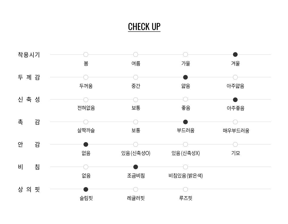 코튼 폴리 스판 혼방 소재로 만들어져 착용감이 우수하며 보온성이 뛰어납니다.