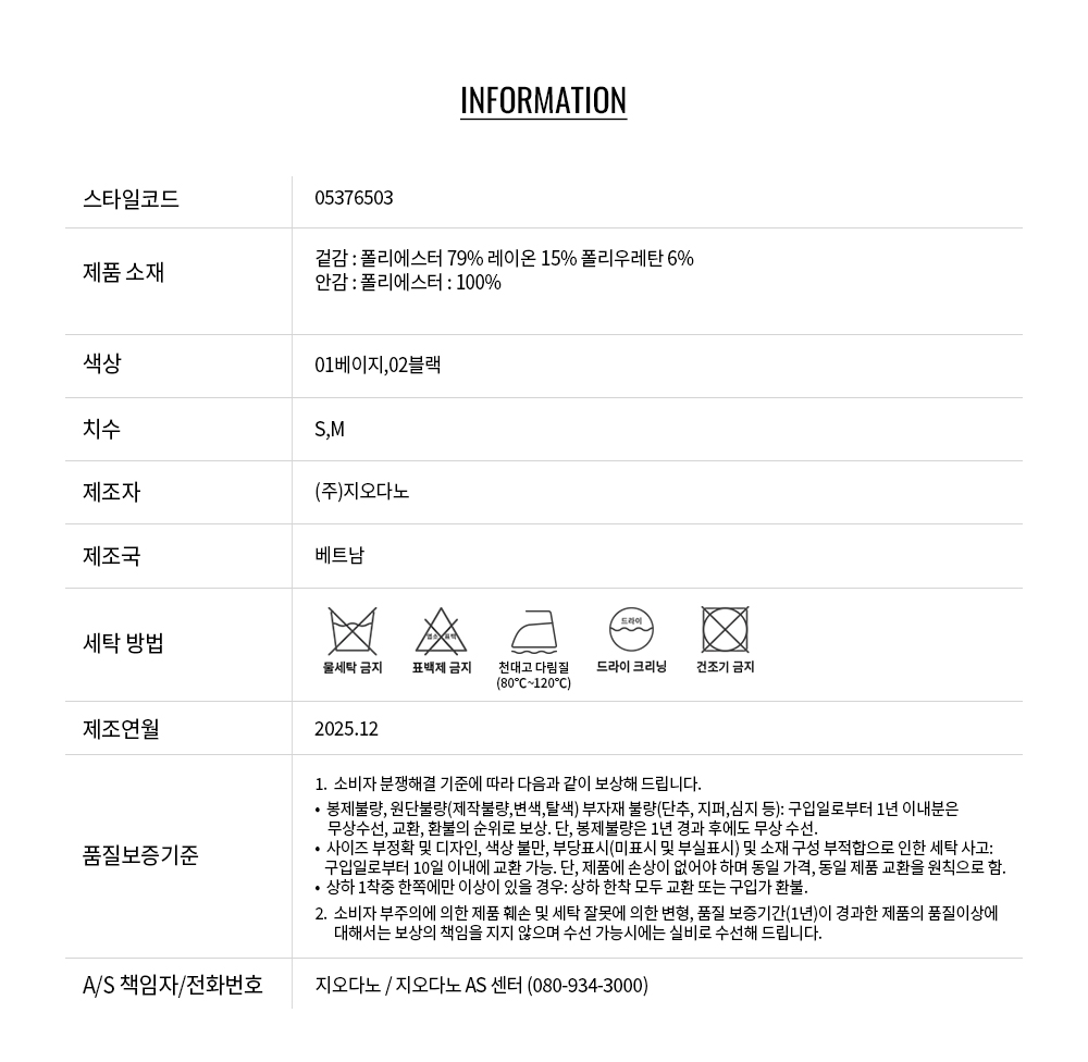 • 교환 진행시 배송비 5,000원 주문자 성함으로 입금 부탁드립니다(신한은행:267-05-028523 (주)지오다노)