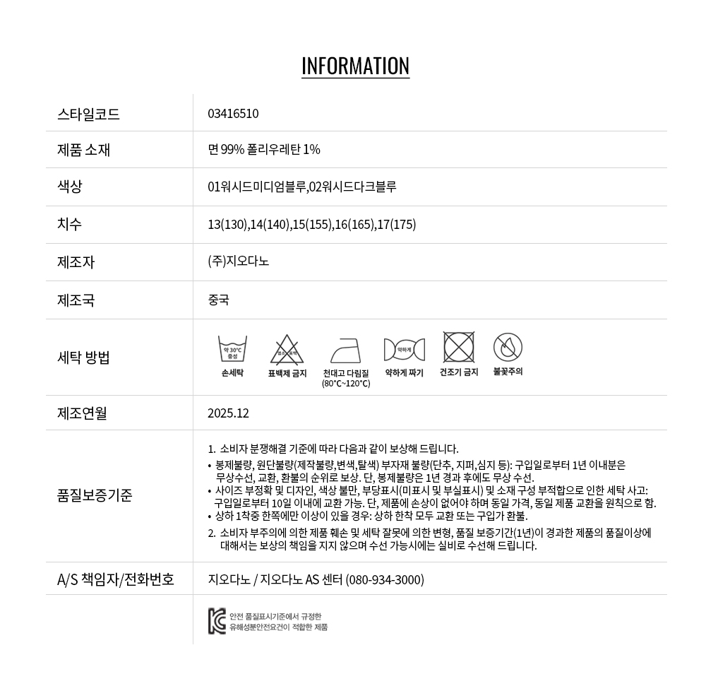 적당한 두께감의 코튼 스판 12oz 데님 원단에 신축성을 더해 편안한 착용감을 제공하며, 일상 활동은 물론 장시간 착용에도 부담이 적은 아이템입니다.