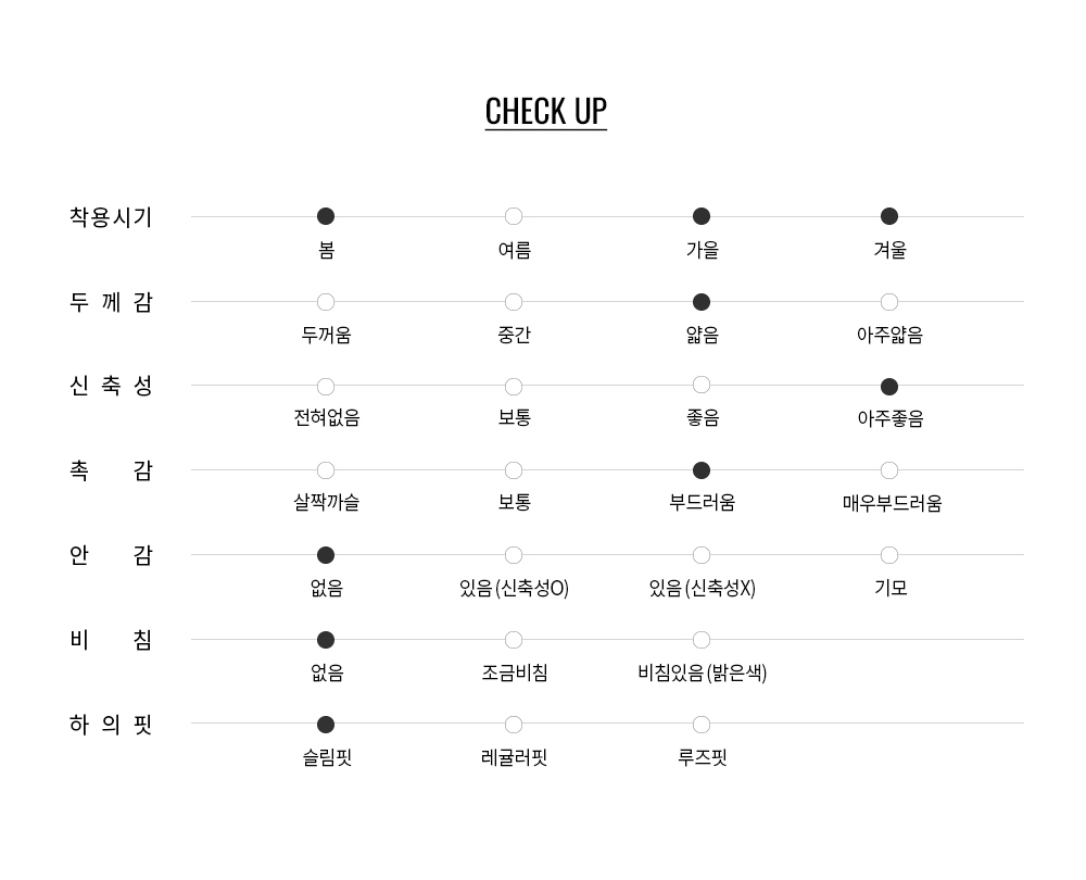 섬유 사이에 형성되는 공기층이 체온을 유지해 보온성을 높이며, 원단 자체의 수분 보유력이 겨울철 정전기 발생을 최소화합니다. 또한 가볍고 부드러운 터치감으로 장시간 착용에도 부담이 적습니다.
