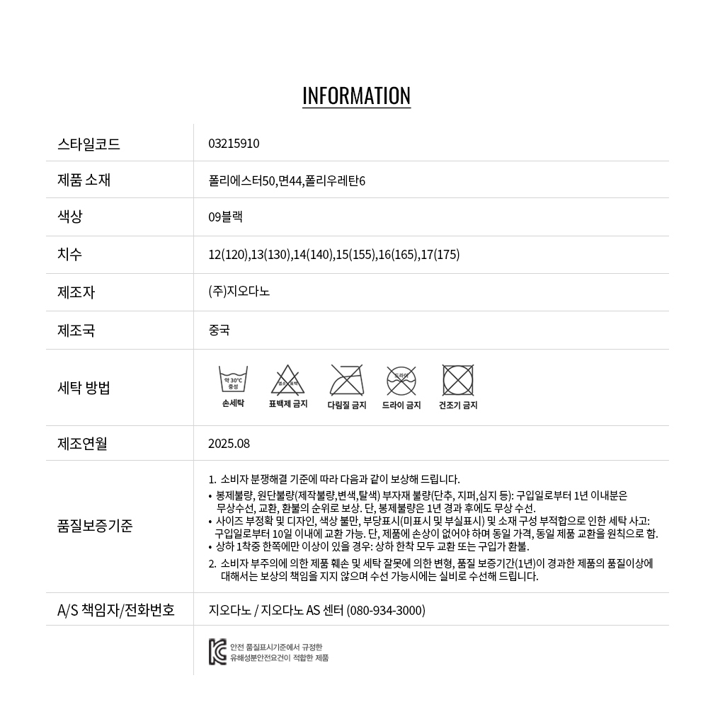 • 교환 진행시 배송비 5,000원 주문자 성함으로 입금 부탁드립니다(신한은행:267-05-028523 (주)지오다노)