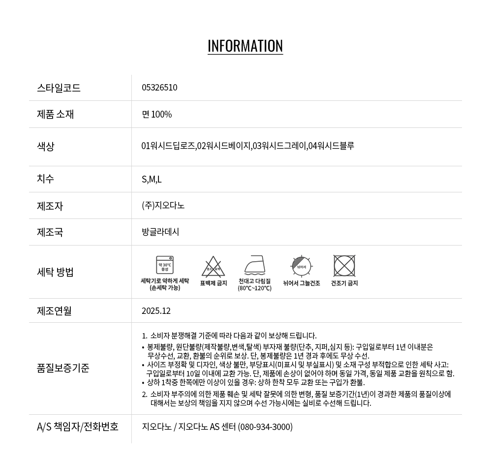 - 교환 진행시 배송비 5,000원 주문자 성함으로 입금 부탁드립니다(신한은행:267-05-028523 (주)지오다노)