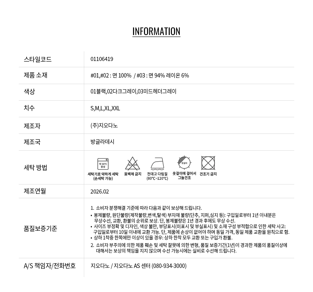 • 교환 진행시 배송비 5,000원 주문자 성함으로 입금 부탁드립니다(신한은행:267-05-028523 (주)지오다노)