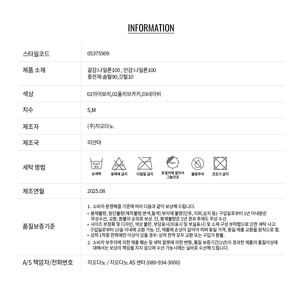 • 교환 진행시 배송비 5,000원 주문자 성함으로 입금 부탁드립니다(신한은행:267-05-028523 (주)지오다노)