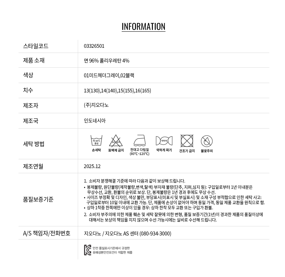 96% 코튼과 4% 스판이 혼방된 원단을 사용해 피부에 닿는 촉감이 부드러우며, 편안한 착용감을 제공합니다.