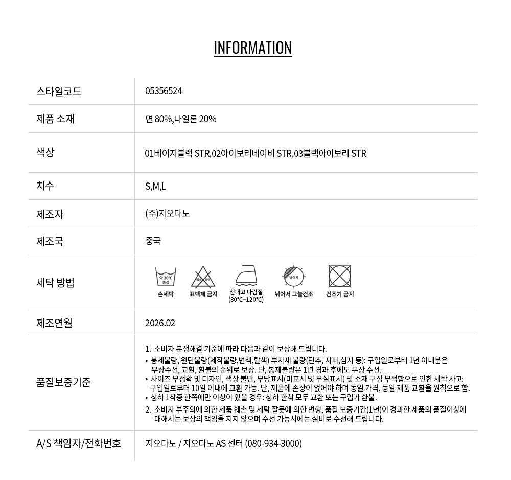 - 교환 진행시 배송비 5,000원 주문자 성함으로 입금 부탁드립니다(신한은행:267-05-028523 (주)지오다노)