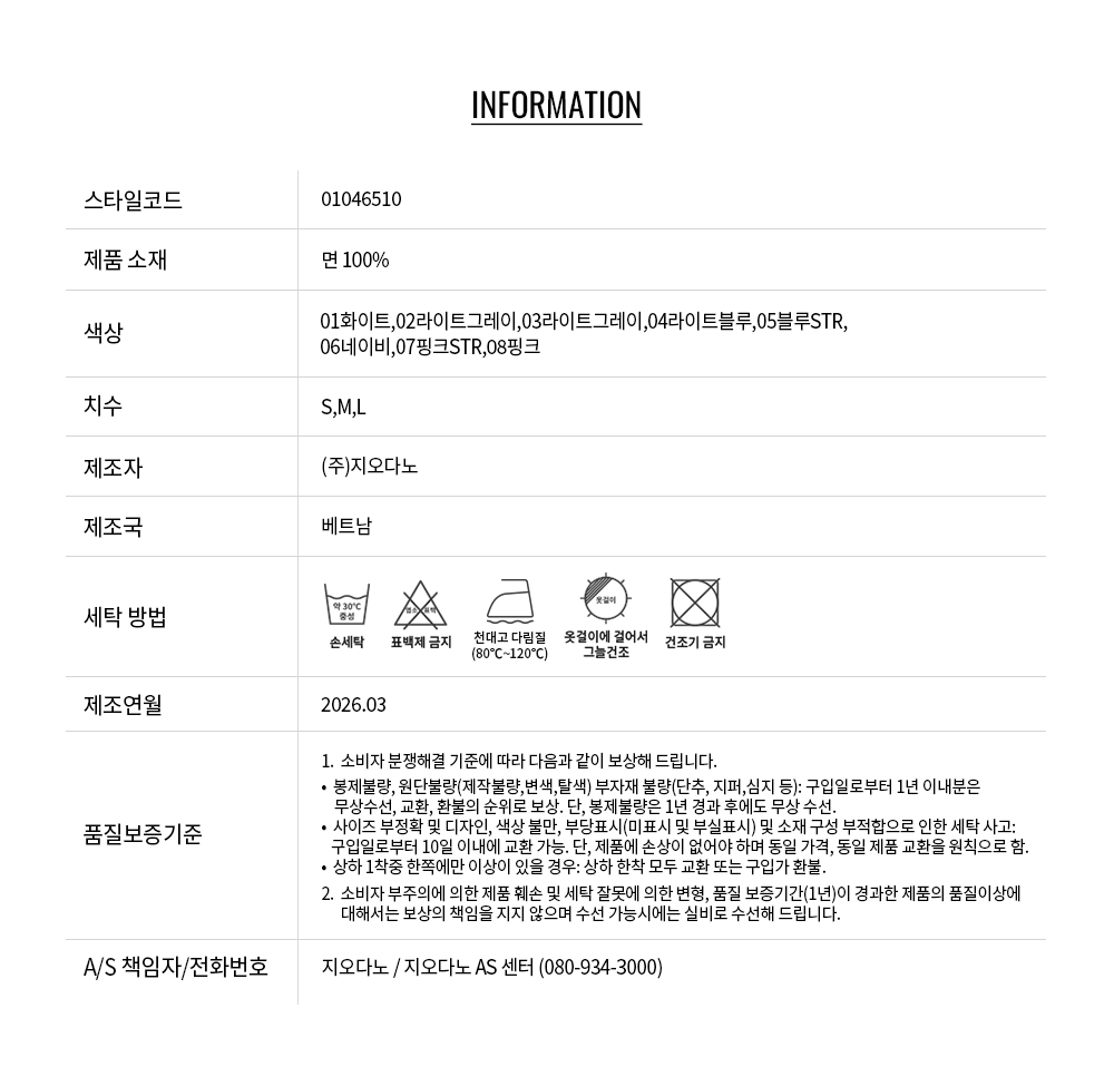 • 교환 진행시 배송비 5,000원 주문자 성함으로 입금 부탁드립니다(신한은행:267-05-028523 (주)지오다노)