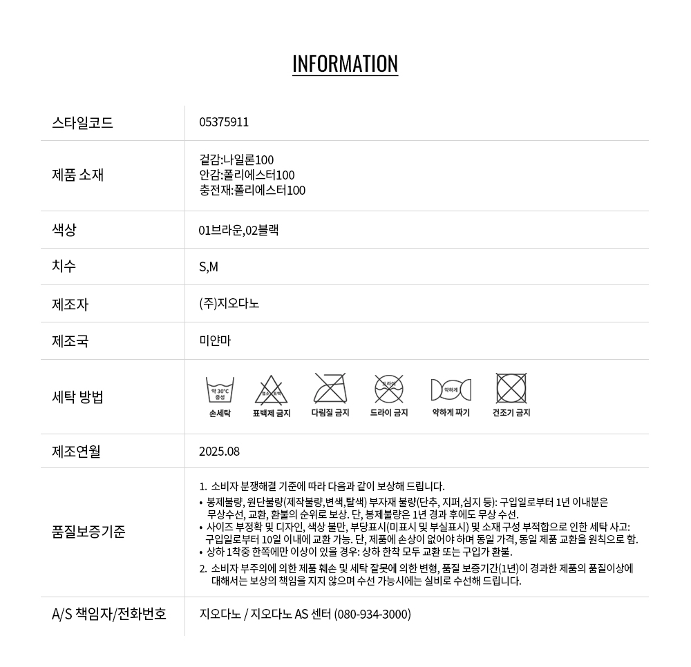 • 교환 진행시 배송비 5,000원 주문자 성함으로 입금 부탁드립니다(신한은행:267-05-028523 (주)지오다노)