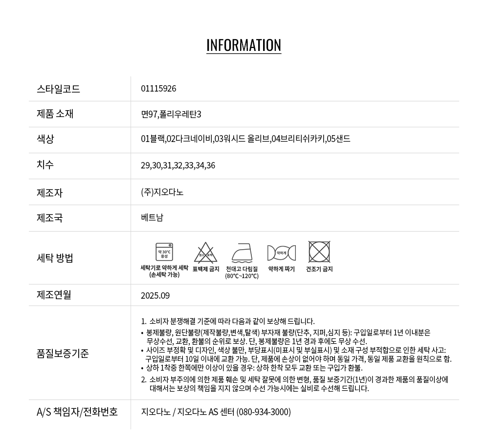 • 교환 진행시 배송비 5,000원 주문자 성함으로 입금 부탁드립니다(신한은행:267-05-028523 (주)지오다노)