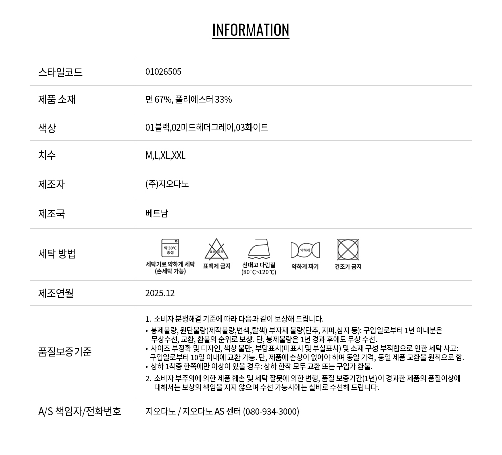 Cotton 67.40% / Polyester 32.60% 혼방 원단을 사용하였으며, COOL JADE-FRESH POLYESTER를 적용해 쾌적한 착용감을 제공합니다.