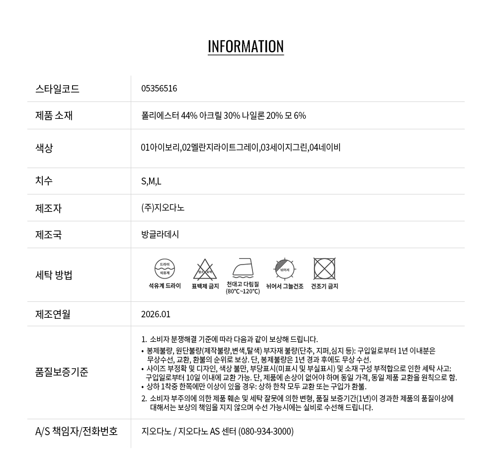 • 교환 진행시 배송비 5,000원 주문자 성함으로 입금 부탁드립니다(신한은행:267-05-028523 (주)지오다노)