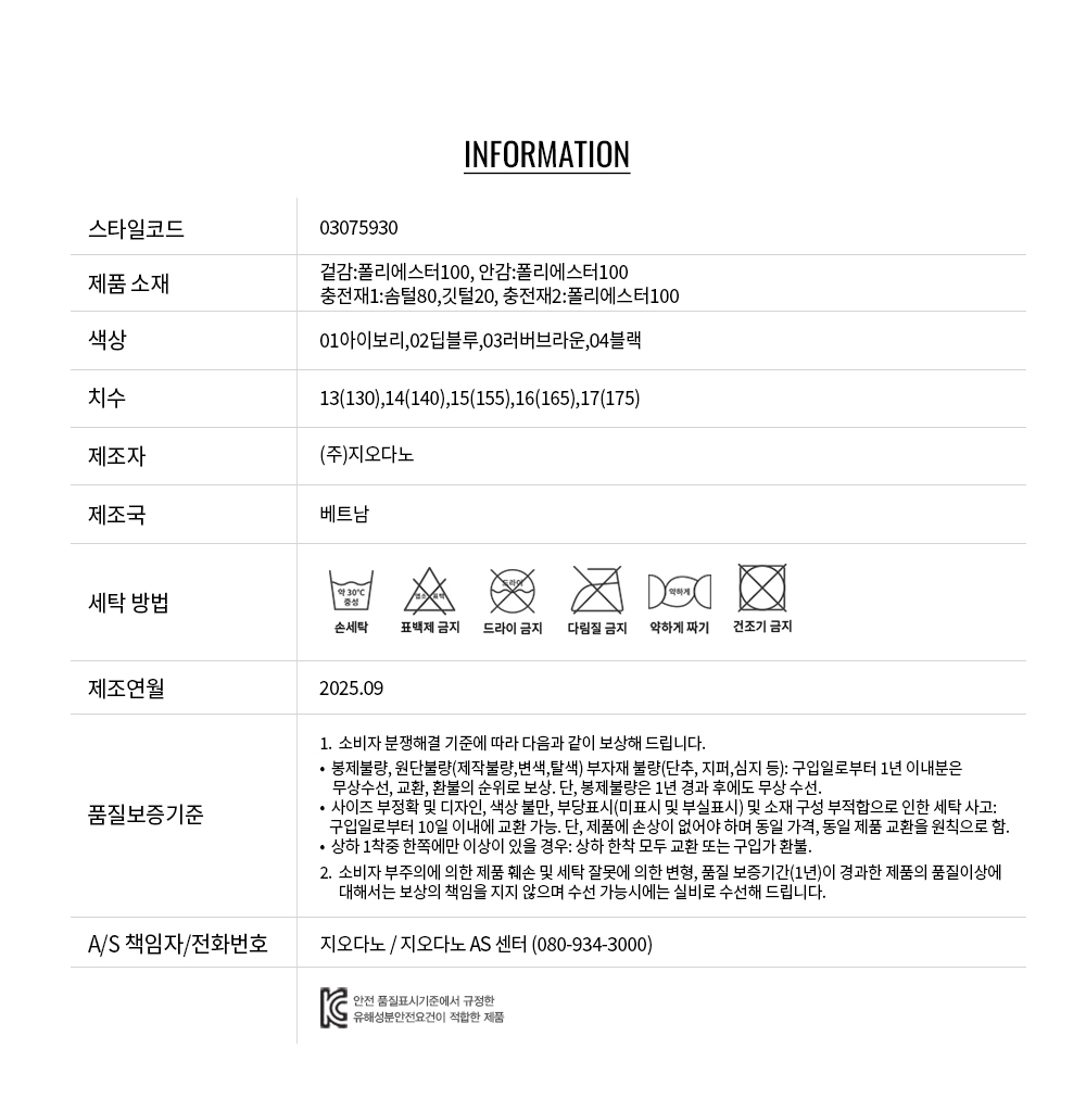 | 배송방식 | 지오다노 물류센터 / CJ대한통운 |