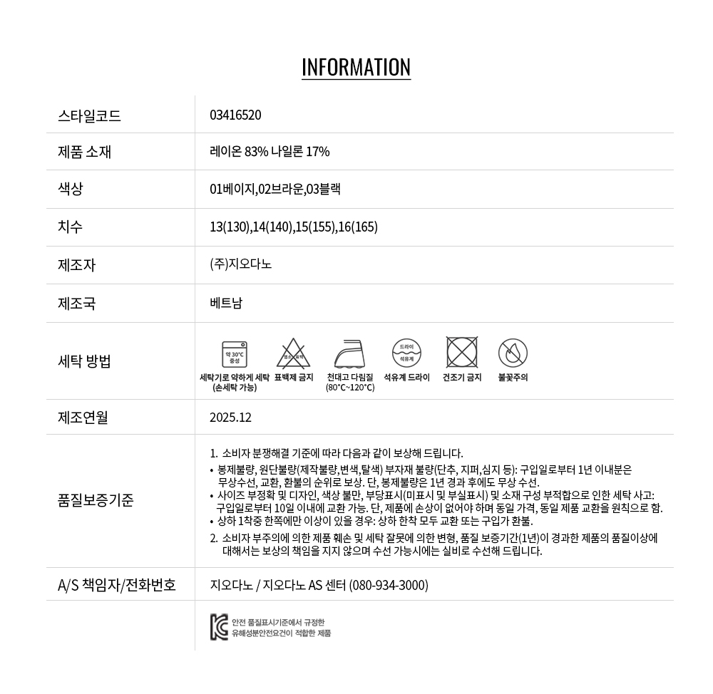 • 교환 진행시 배송비 5,000원 주문자 성함으로 입금 부탁드립니다(신한은행:267-05-028523 (주)지오다노)