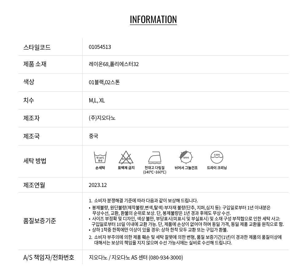 • 교환 진행시 배송비 5,000원 주문자 성함으로 입금 부탁드립니다(신한은행:267-05-028523 (주)지오다노)
