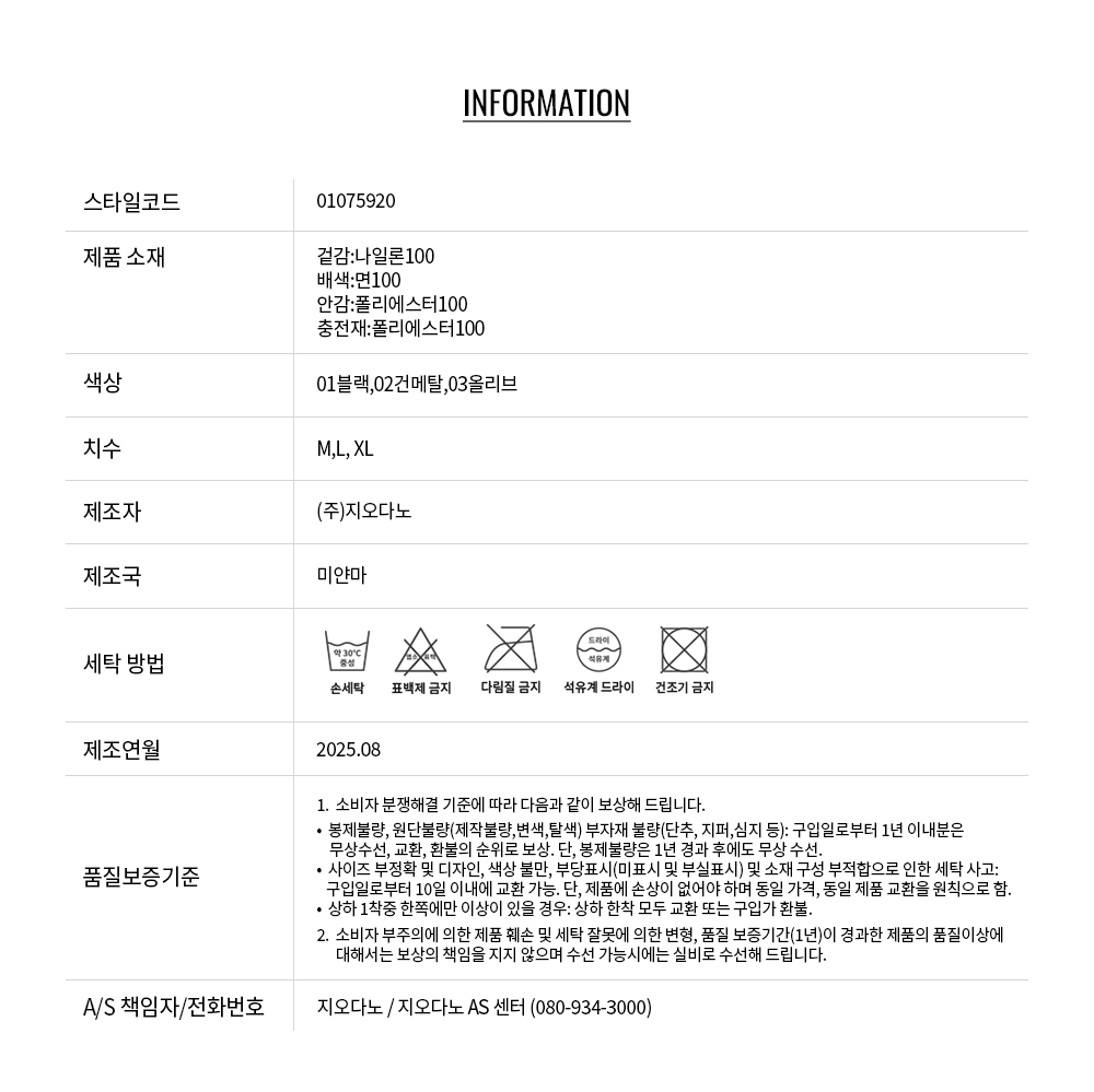 YKK 지퍼와 MA-1 포켓 디테일로 완성도를 높였고, 볼륨감과 따뜻함을 살린 지속가능한 충전재로 편안하면서도 트렌디한 실루엣을 보여줍니다.