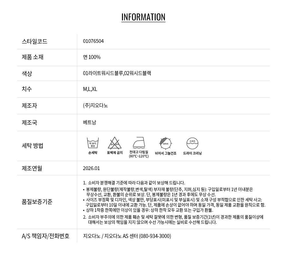 • 교환 진행시 배송비 5,000원 주문자 성함으로 입금 부탁드립니다(신한은행:267-05-028523 (주)지오다노)