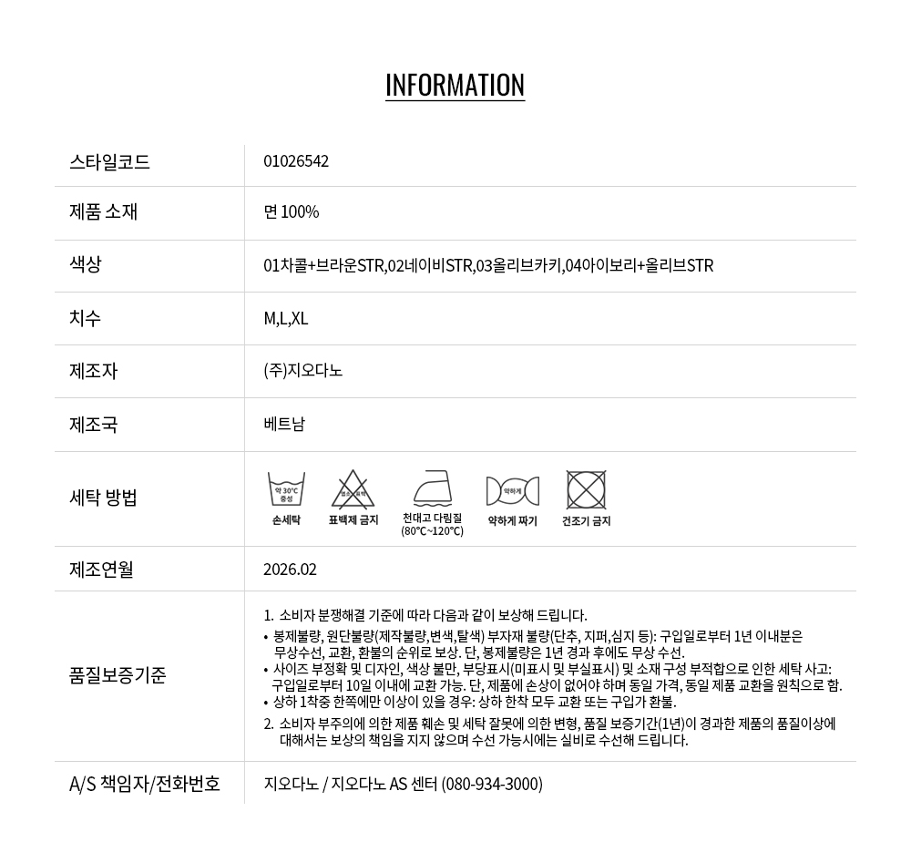 - 교환 진행시 배송비 5,000원 주문자 성함으로 입금 부탁드립니다(신한은행:267-05-028523 (주)지오다노)