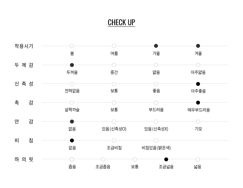 다양한 니트, 셔츠, 아우터와 매치해 포멀부터 캐주얼까지 폭넓은 스타일링이 가능합니다.