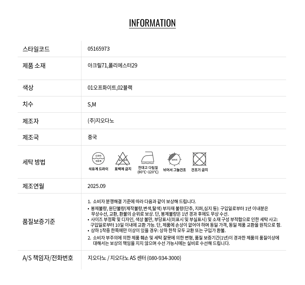 - 교환 진행시 배송비 5,000원 주문자 성함으로 입금 부탁드립니다(신한은행:267-05-028523 (주)지오다노)