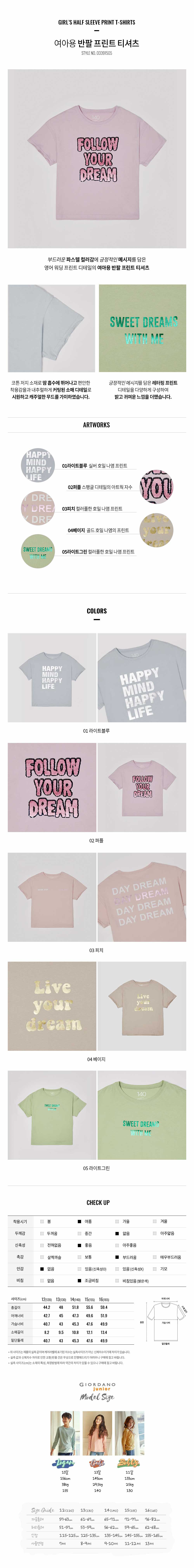 주니어 그래픽 반팔 티셔츠(여아)