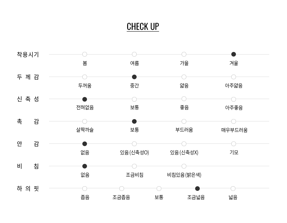장시간 착용과 잦은 세탁 후에도 변형 없이 안정된 실루엣을 유지합니다.