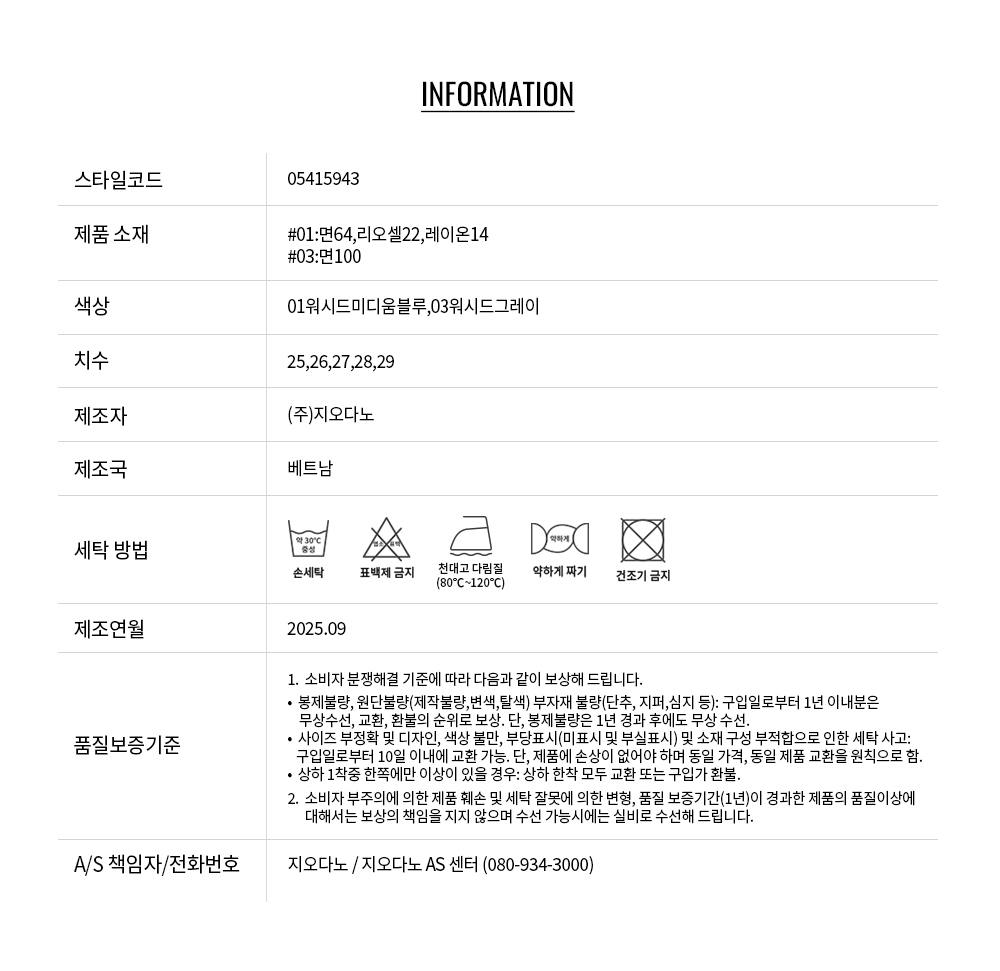 데님 제품의 경우 워싱 가공 특성 상 제품별 디테일의 편차가 있을 수 있습니다.