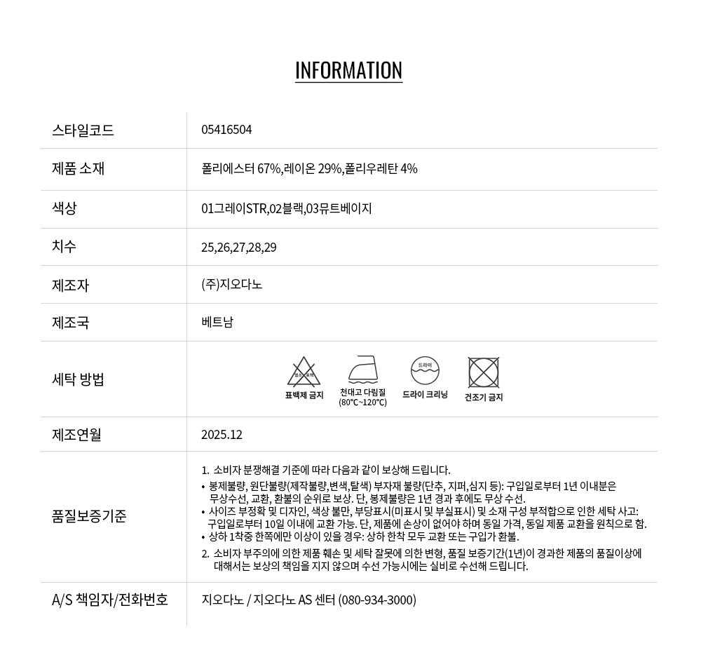 • 교환 진행시 배송비 5,000원 주문자 성함으로 입금 부탁드립니다(신한은행:267-05-028523 (주)지오다노)