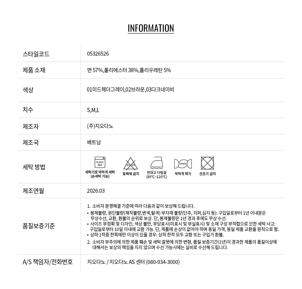 • 교환 진행시 배송비 5,000원 주문자 성함으로 입금 부탁드립니다(신한은행:267-05-028523 (주)지오다노)