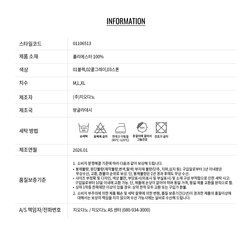 • 교환 진행시 배송비 5,000원 주문자 성함으로 입금 부탁드립니다(신한은행:267-05-028523 (주)지오다노)