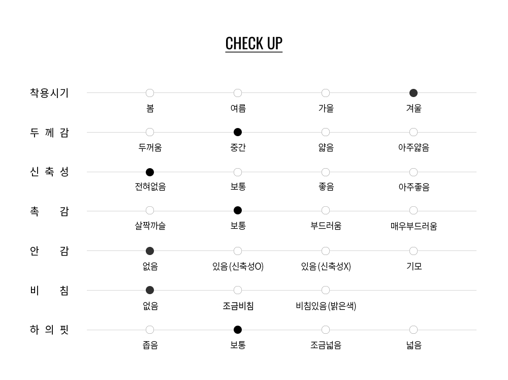 또한 원단 안쪽에 기모 가공 처리 되어 한겨울까지 따뜻하게 착용 가능합니다.