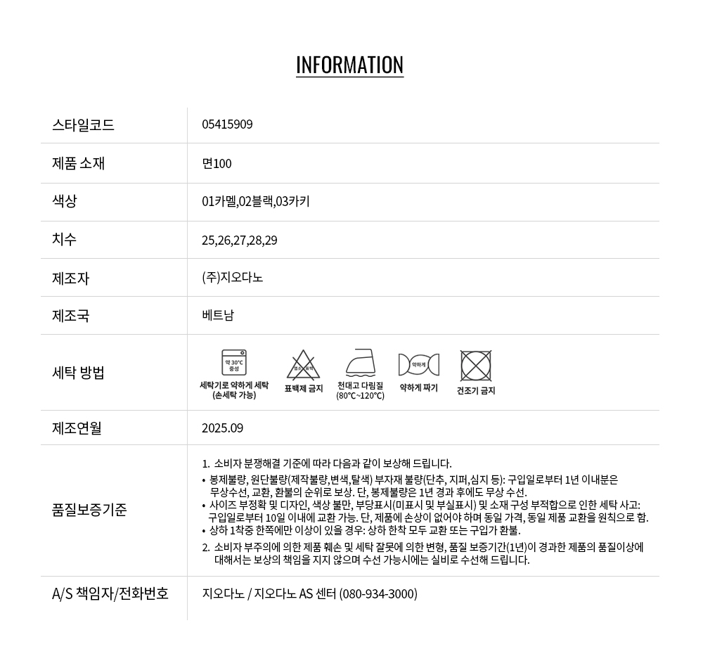 • 교환 진행시 배송비 5,000원 주문자 성함으로 입금 부탁드립니다(신한은행:267-05-028523 (주)지오다노)
