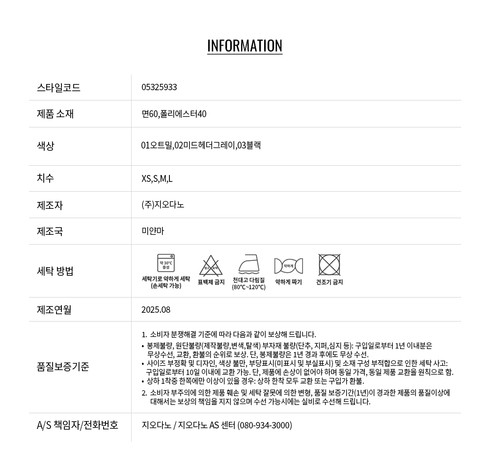 • 교환 진행시 배송비 5,000원 주문자 성함으로 입금 부탁드립니다(신한은행:267-05-028523 (주)지오다노)