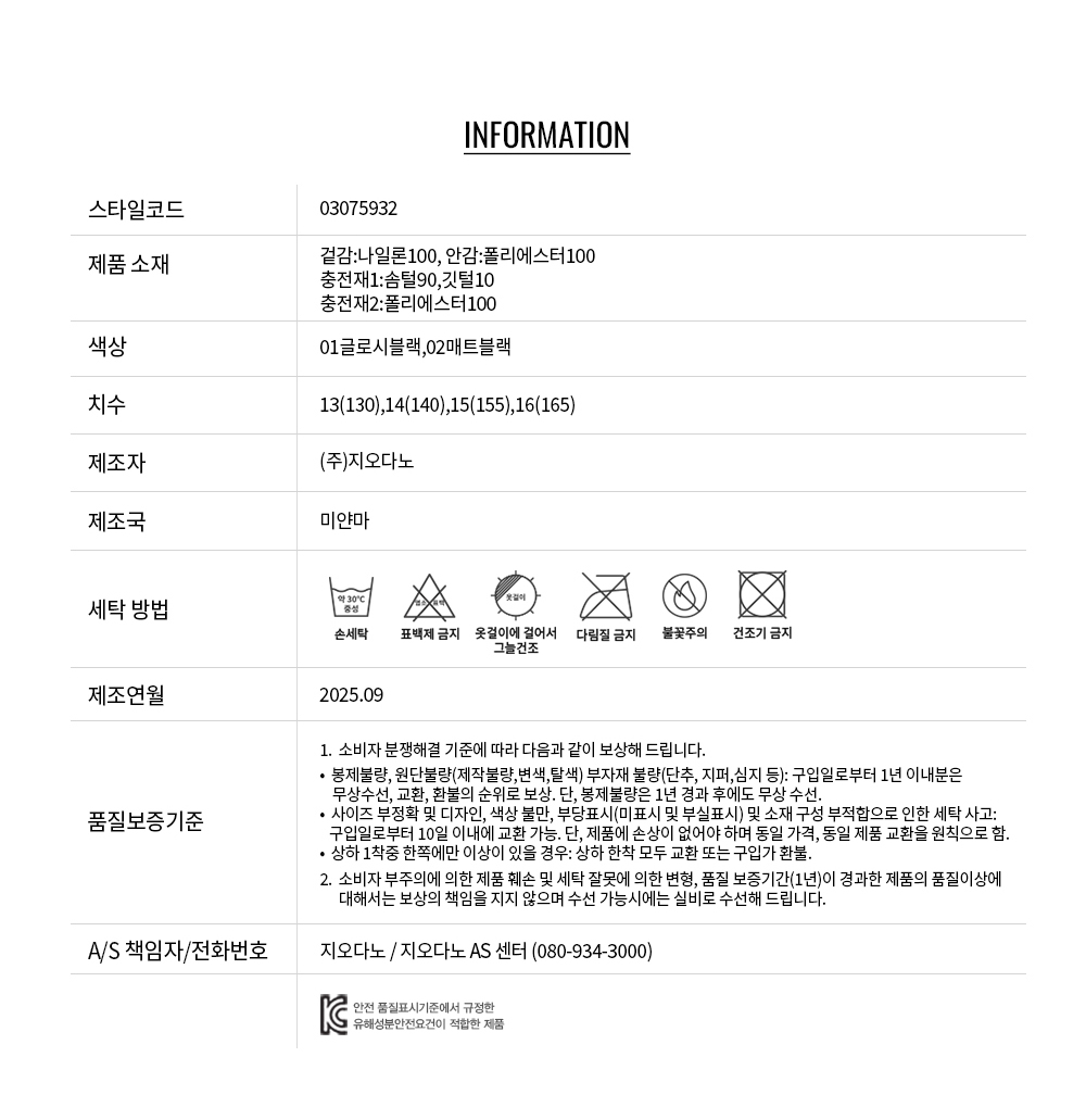 덕다운 90:10 + SORONA 충전재를 사용해 가볍고 뛰어난 보온성을 구현하였으며, 고밀도 다운백으로 털 빠짐을 최소화했습니다.