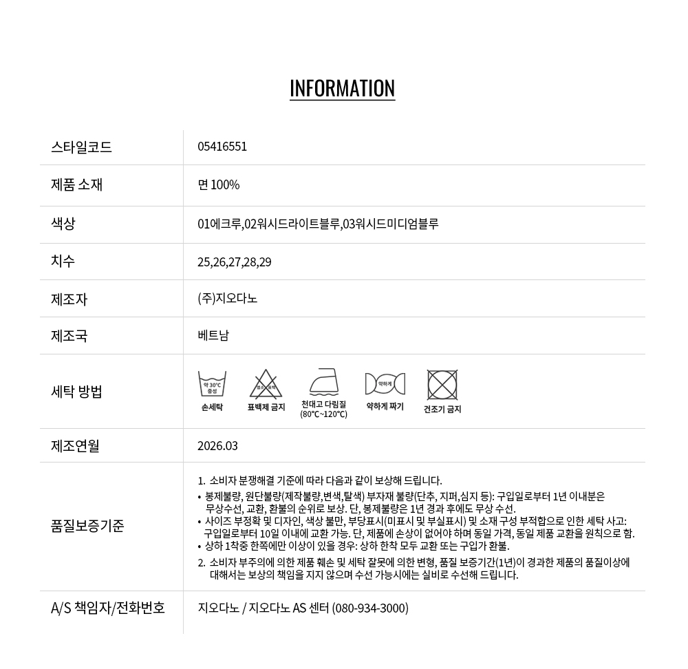 • 교환 진행시 배송비 5,000원 주문자 성함으로 입금 부탁드립니다(신한은행:267-05-028523 (주)지오다노)