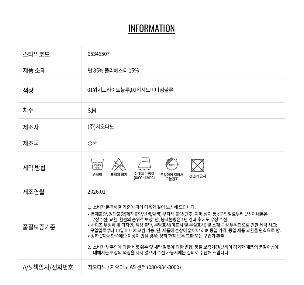 • 교환 진행시 배송비 5,000원 주문자 성함으로 입금 부탁드립니다(신한은행:267-05-028523 (주)지오다노)