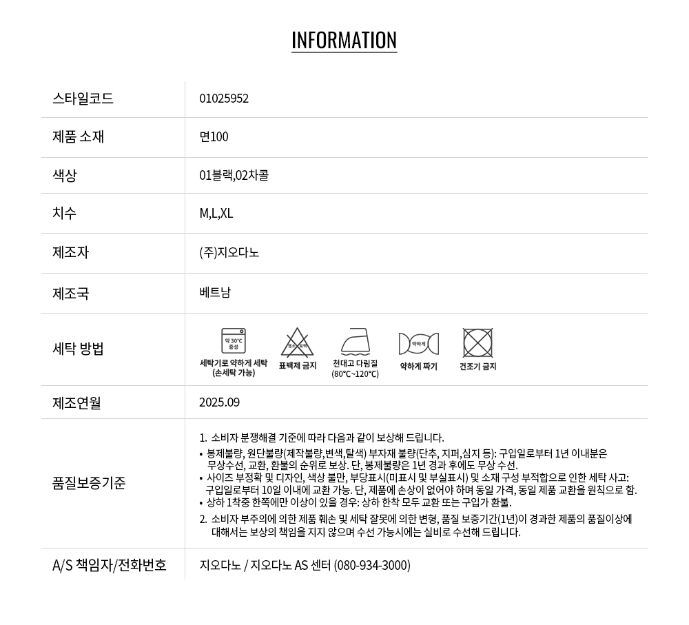 • 교환 진행시 배송비 5,000원 주문자 성함으로 입금 부탁드립니다(신한은행:267-05-028523 (주)지오다노)