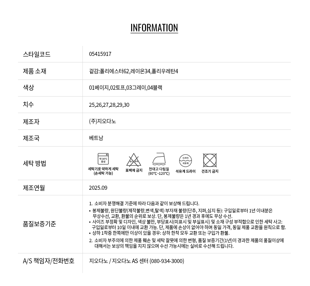• 교환 진행시 배송비 5,000원 주문자 성함으로 입금 부탁드립니다(신한은행:267-05-028523 (주)지오다노)