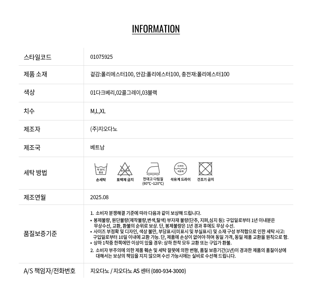 - 교환 진행시 배송비 5,000원 주문자 성함으로 입금 부탁드립니다(신한은행:267-05-028523 (주)지오다노)