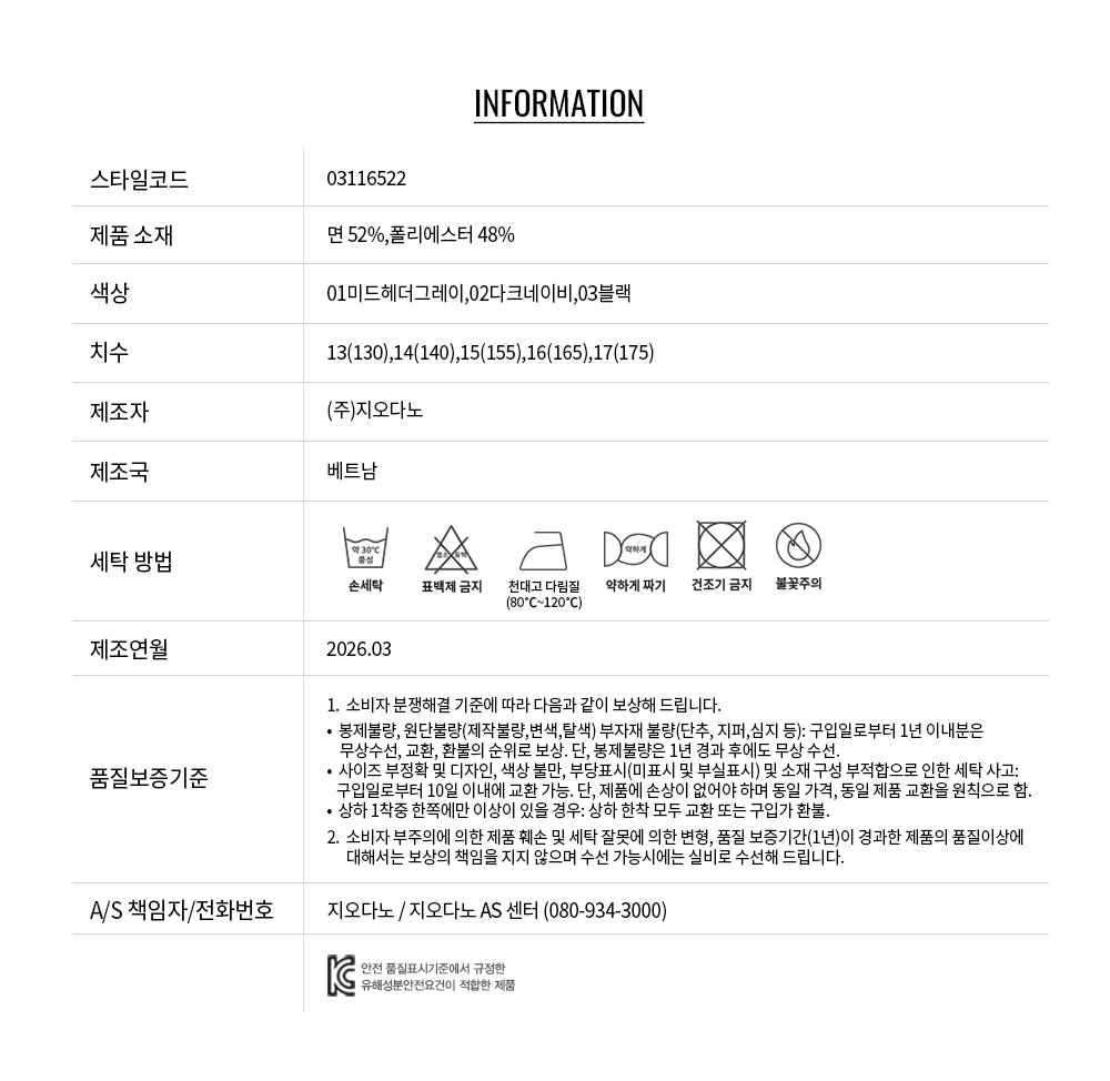 • 교환 진행시 배송비 5,000원 주문자 성함으로 입금 부탁드립니다(신한은행:267-05-028523 (주)지오다노)
