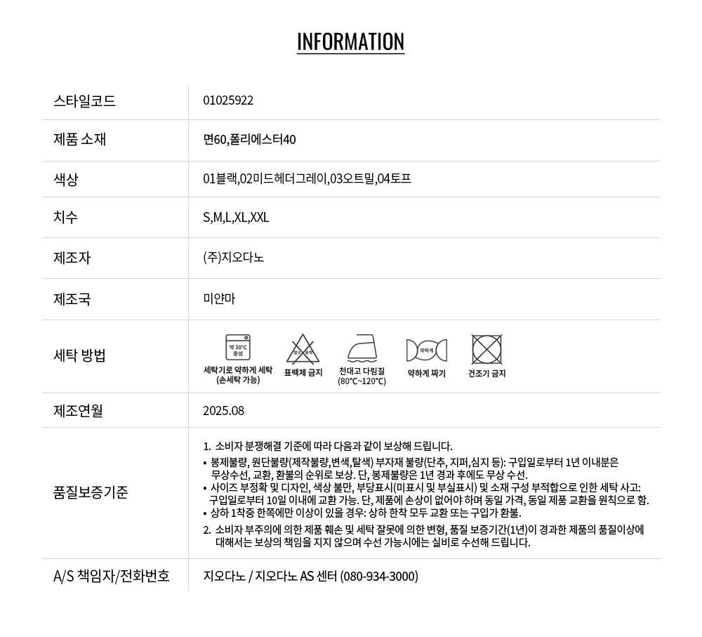 • 교환 진행시 배송비 5,000원 주문자 성함으로 입금 부탁드립니다(신한은행:267-05-028523 (주)지오다노)