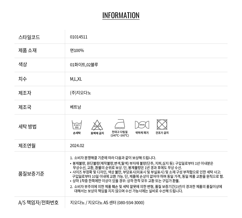 • 교환 진행시 배송비 5,000원 주문자 성함으로 입금 부탁드립니다(신한은행:267-05-028523 (주)지오다노)