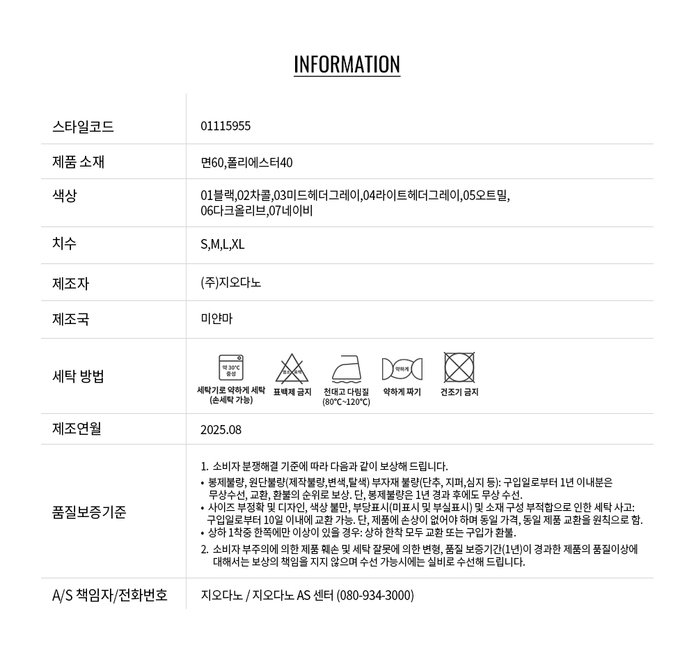 • 교환 진행시 배송비 5,000원 주문자 성함으로 입금 부탁드립니다(신한은행:267-05-028523 (주)지오다노)