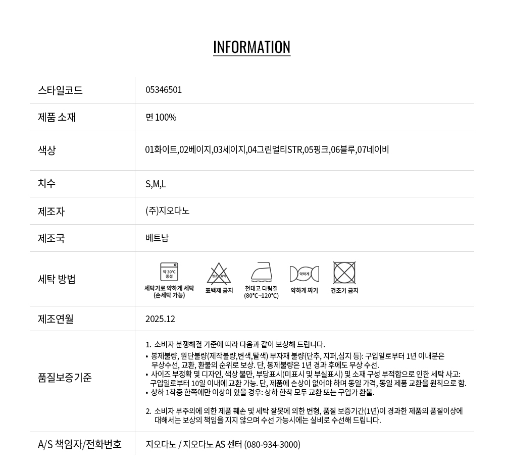 소재의 내구성을 높여 세탁 시 옷의 변형을 최소화 시켰습니다.