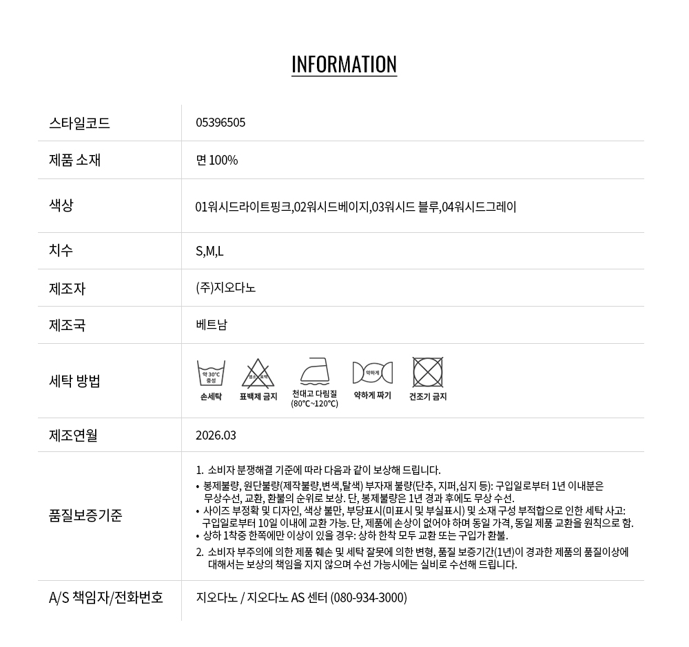 • 교환 진행시 배송비 5,000원 주문자 성함으로 입금 부탁드립니다(신한은행:267-05-028523 (주)지오다노)