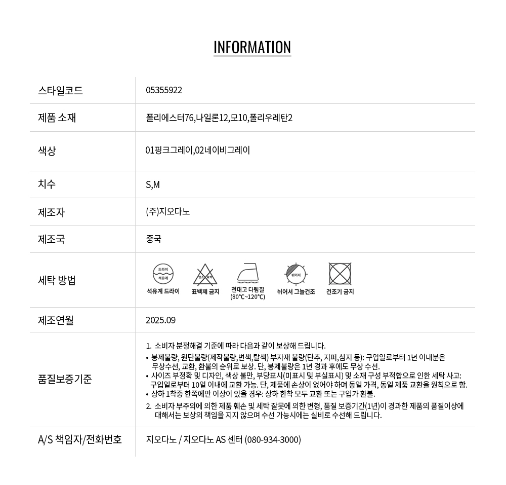 • 교환 진행시 배송비 5,000원 주문자 성함으로 입금 부탁드립니다(신한은행:267-05-028523 (주)지오다노)