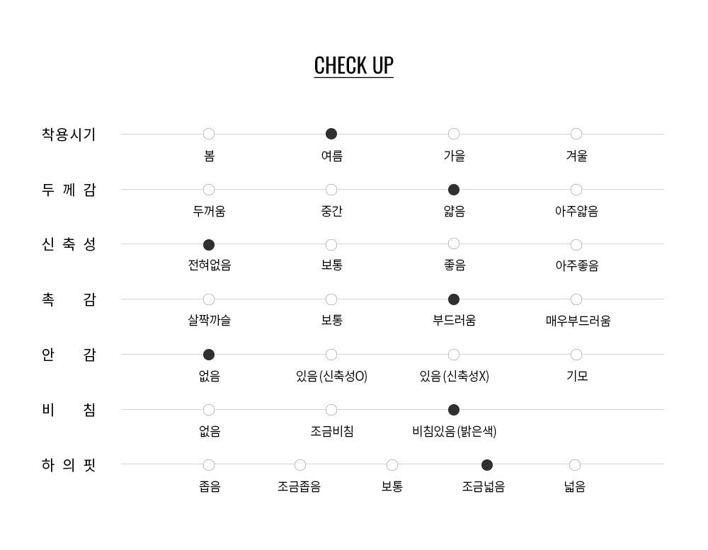 화이트와 블랙 컬러로 구성되어 있으며 화이트 컬러는 비침을 최소화하기 위해 안감을 적용했습니다.