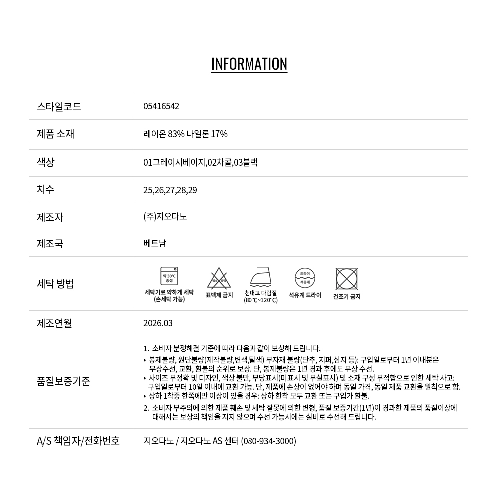 • 교환 진행시 배송비 5,000원 주문자 성함으로 입금 부탁드립니다(신한은행:267-05-028523 (주)지오다노)