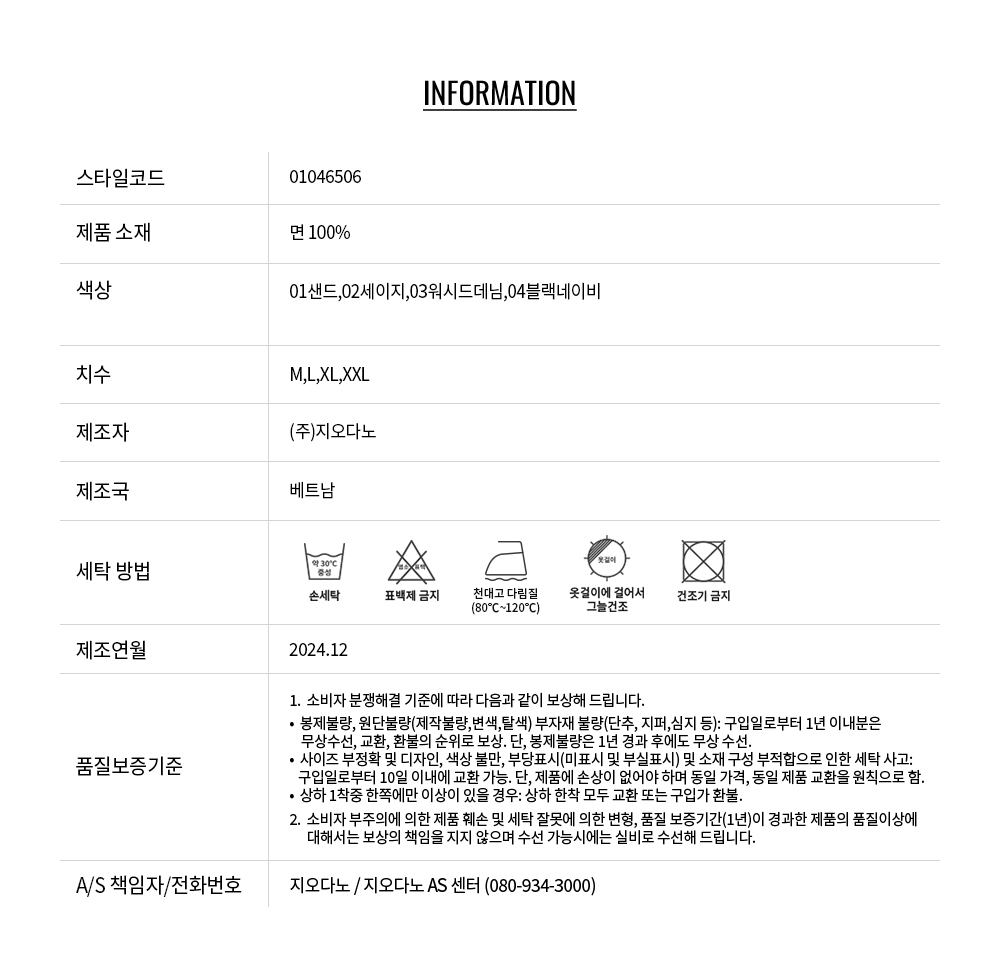 • 교환 진행시 배송비 5,000원 주문자 성함으로 입금 부탁드립니다(신한은행:267-05-028523 (주)지오다노)