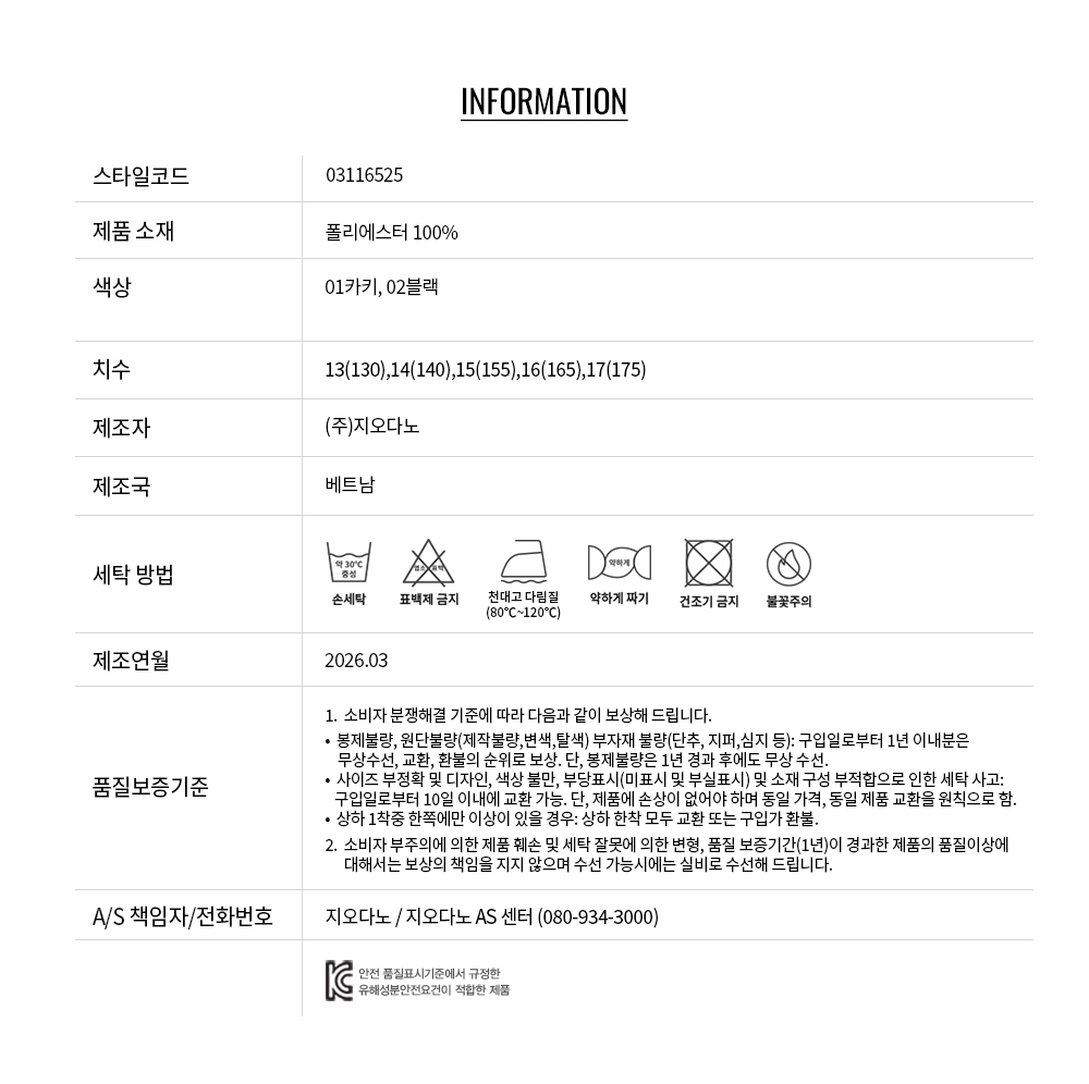 POLYESTER 100% 원단을 사용하여 부드러운 터치감과 경량감을 제공하며, 내츄럴한 질감으로 편안한 착용감을 자랑합니다. 남녀 모두 데일리룩이나 등하교룩에 활용하기 좋은 아이템입니다.