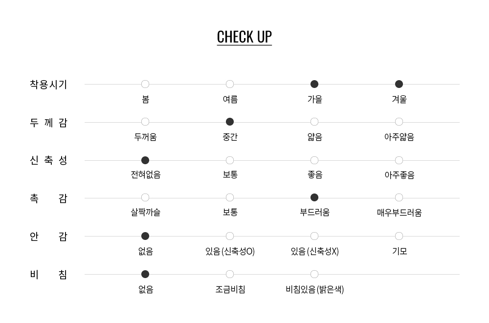 • 반품 진행시 검수 후 동일한 결제수단으로 차감 후 환불 됩니다.( 부분 반품 배송비 2,500원, 전체 반품 배송비 5,000원이며, 무료배송 기준에 따라 부분반품 시에도 5,000원 발생될 수 있습니다.)